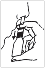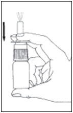 - Tilt your head forwards (look at your toes). Spray once into each nostril, closing the other nostril with one finger. Sniff slowly and gently.