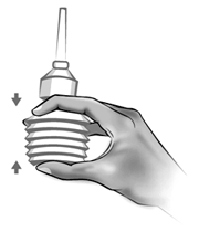 - Remove the protective cap from the applicator. Place your thumb on the base of the bottle, with your index and second finger, placed at the top of the bottle and below the applicator for support as shown in the figure below.