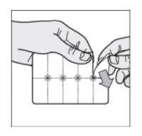 - Tear along the perforated lines to separate one “pocket” from the blister strip.