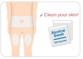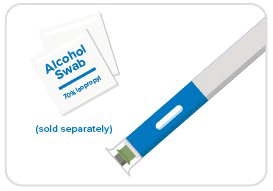 - Place your auto-injector and unopened alcohol swabs on a clean, dry surface.