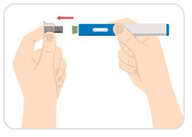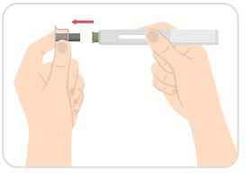 - Carefully pull off the clear needle cap with a metal center from the auto-injector.