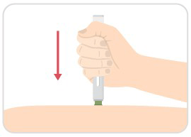 - Place the green base straight on your skin, and push the entire device down firmly to start the injection.