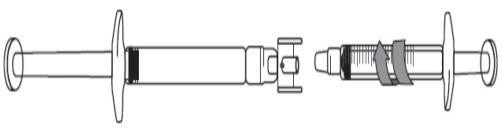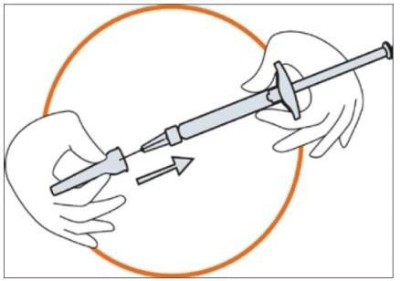 Avoid touching the ends of the adapter and syringe tips, to prevent contamination. - Screw the adapter onto the pre-filled syringe.