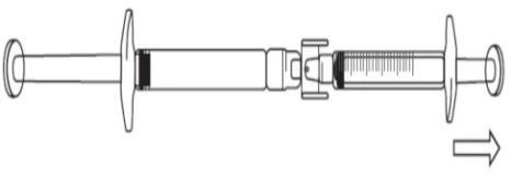 - Turn the connected syringes so that the pre-filled syringe is on top (see below image).
