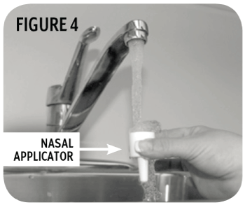 - Rinse both ends of the nasal applicator under cold water. Let air dry. (Figure 4)
