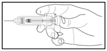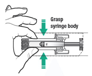 - Open the blister tray containing the pre-filled syringe by peeling away the lid from the blister tray. Remove the pre-filled syringe from the blister tray by grasping from the syringe body.