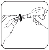 - Insert cartridge into the cartridge holder, then screw the cartridge holder back onto the pen. (Be careful not to touch the rubber seal.)