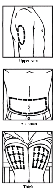 Prepare the injection site by wiping with an alcohol swab. Injection sites include the upper arms, abdomen, and upper thighs. Change the injection sites to avoid discomfort. Even if you develop a preference for one site, you still should rotate the injection site.