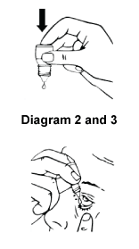 - Release one drop into the pouch/pocket formed between the eye and eyelid by gently tapping or pressing the base of the bottle with your forefinger (see Diagrams 2 and 3).