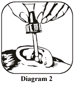 - Put the tip of the dropper close to the ear and gently squeeze three drops into the ear (see Diagram 2).