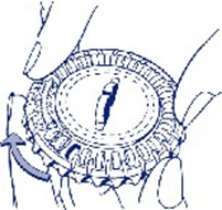 On the next day simply move the transparent dial clockwise one space as indicated by the arrow. Tip out the next tablet. Remember to take only one tablet once a day.