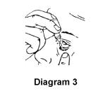 - Put the tip of the dropper close to, but not touching your eye. Release the required number of drops into the pouch/pocket formed between the eye and eyelid by gently squeezing the side of the bottle (see Diagrams 2 and 3).
